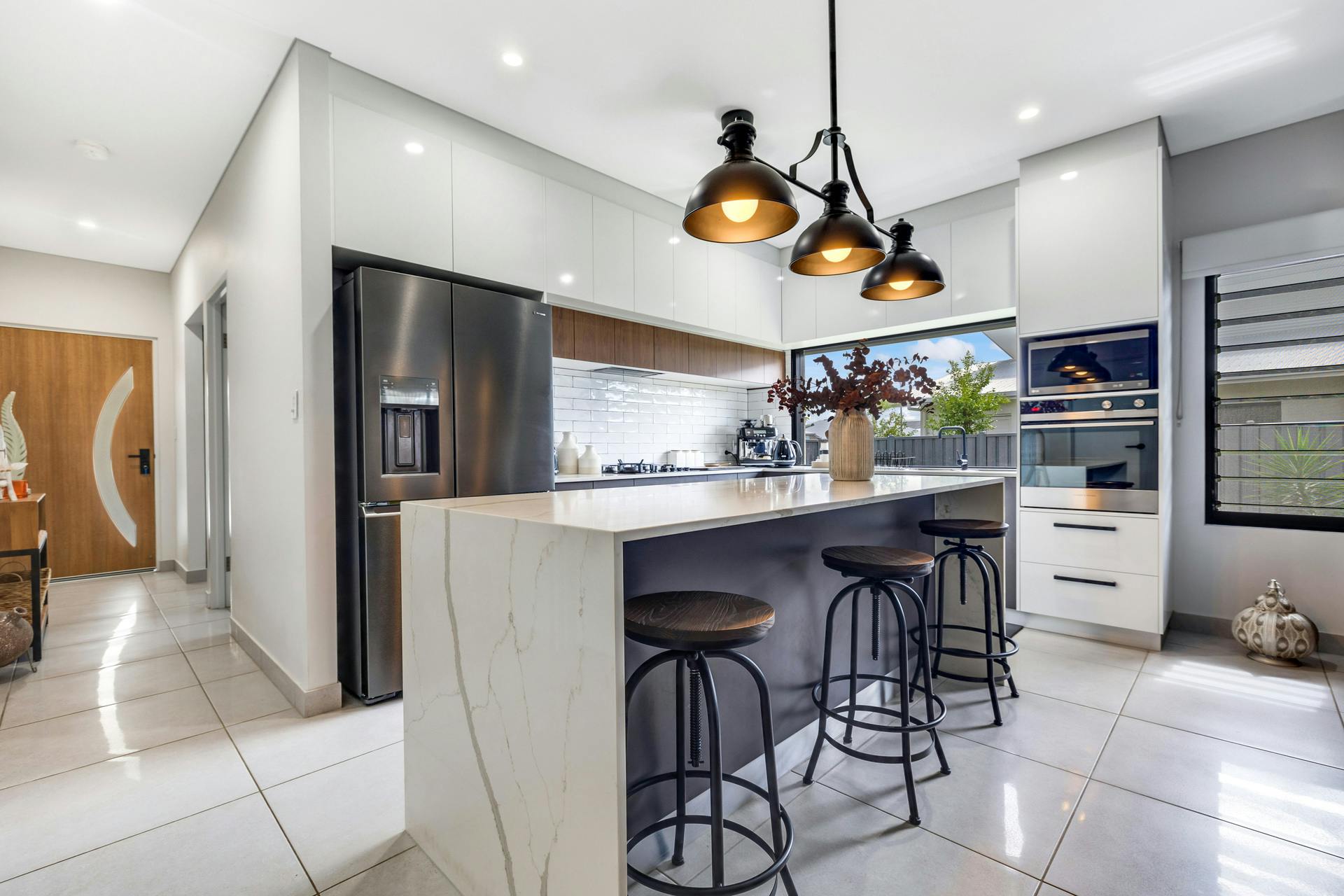 The heart of the home is its open-plan living space, where the kitchen, dining and living areas flow seamlessly to the large outside entertaining space.