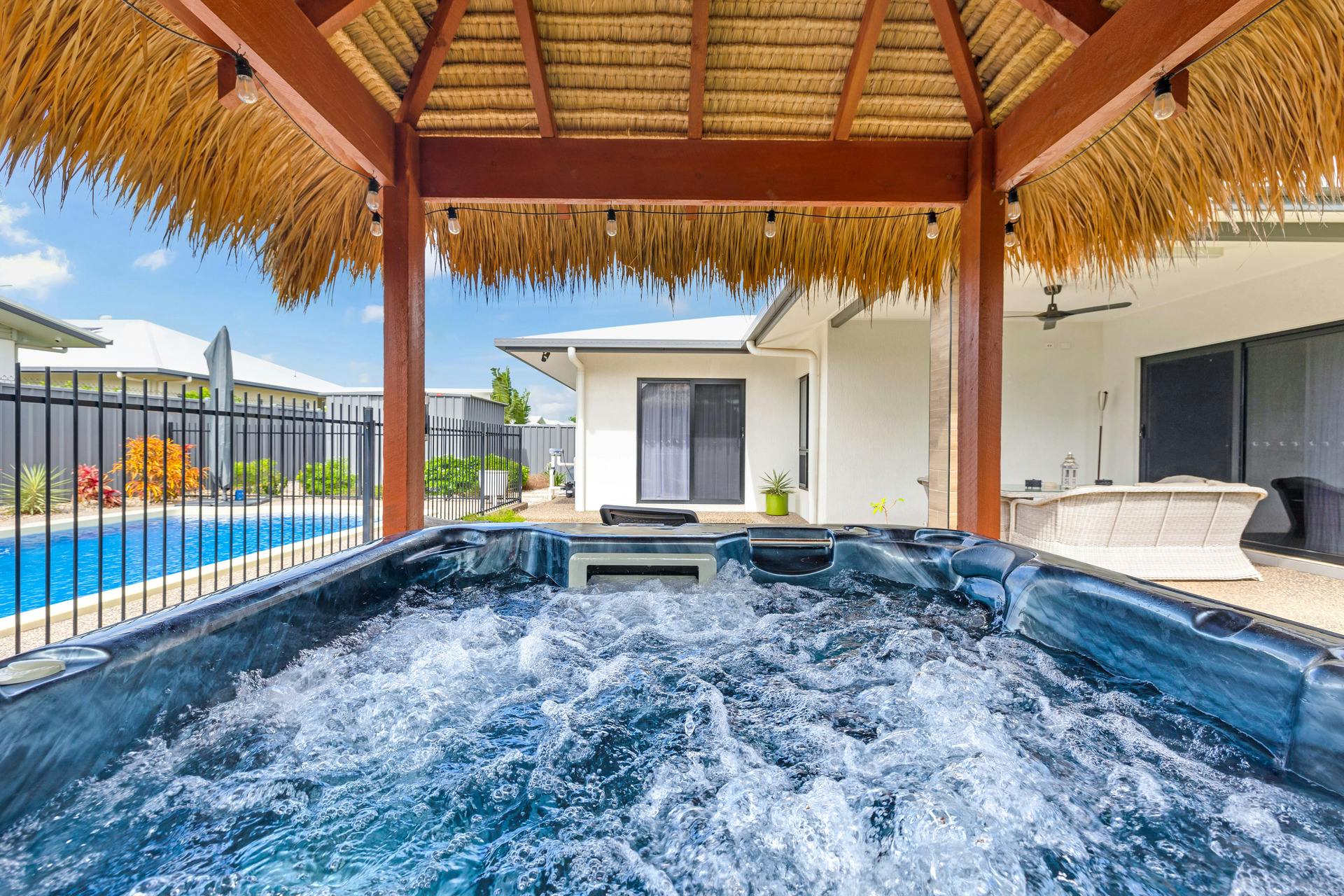 • A large outdoor entertaining space complete Bali hut, above-ground spa and a huge swimming pool for endless fun.