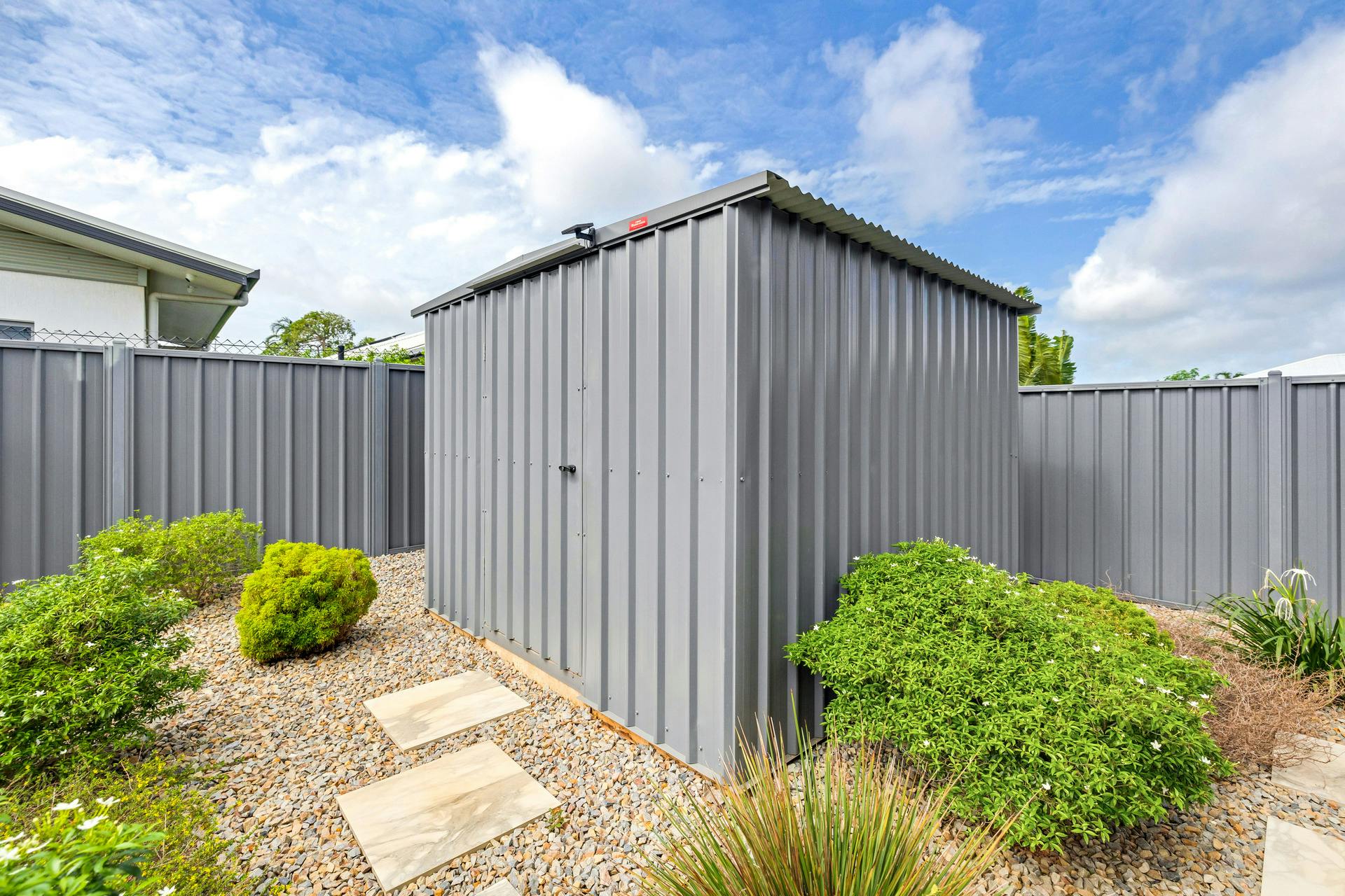 The inclusion of a garden shed and a double garage combines functionality with the elegance of the home's design.