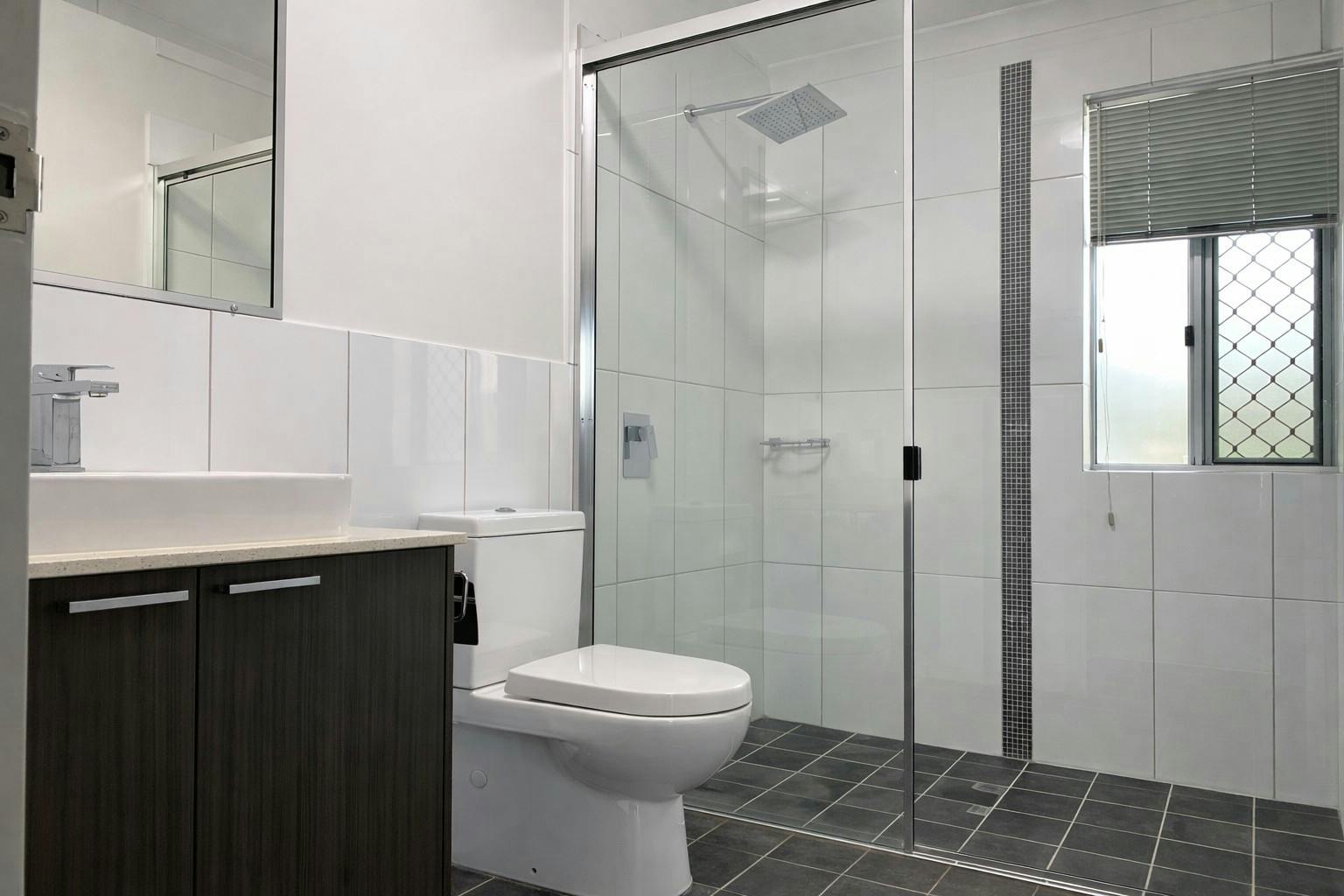 - Two Bathrooms – Main bathroom with a separate shower and bath.
