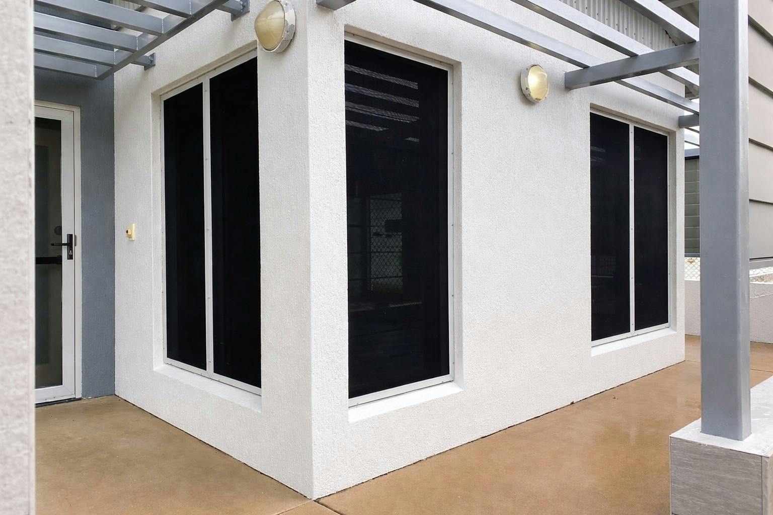 - Front louvred patio area.